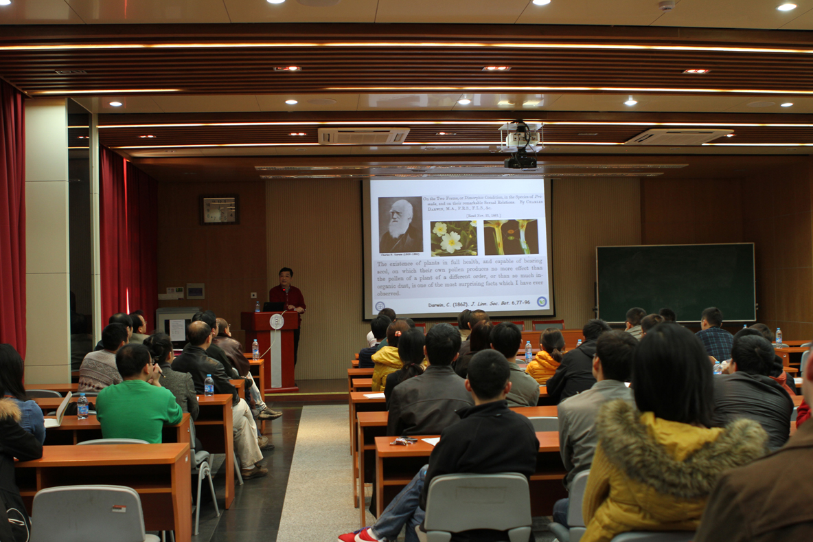4月11日下午,在清华大学生命科学馆143报告厅,来自中国科学院遗传发育所的薛勇彪研究员为师生们带来了一场精彩的学术报告。报告的题目为——显花植物的“枕边话”:核酸酶类自交不亲和性的分子机制。报告由生命中心戚益军主持,来自生命学院、医学院以及兄弟院校的80余名师生听取了本次报告。