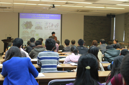 施教授向大家介绍,人们综合应用核磁共振与晶体衍射、X-射线小角散射、计算生物学等多种方式,研究超大分子复合物(生物大分子机器) in Action, 取得了十分可喜的成绩。同时介绍其实验室近年来在RNA-蛋白质结构生物学研究方面做的一些努力。
