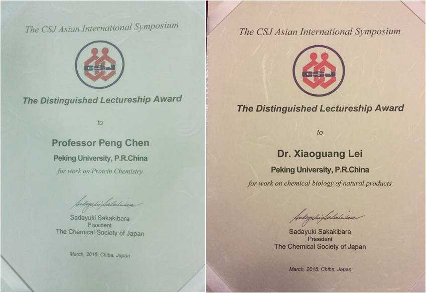 陈鹏、雷晓光获日本化学会“2015 The Distinguished Lectureship Award”