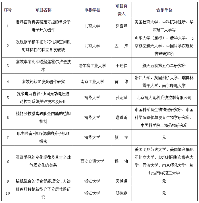 2016年度“中国高等学校十大科技进展”入选项目名单