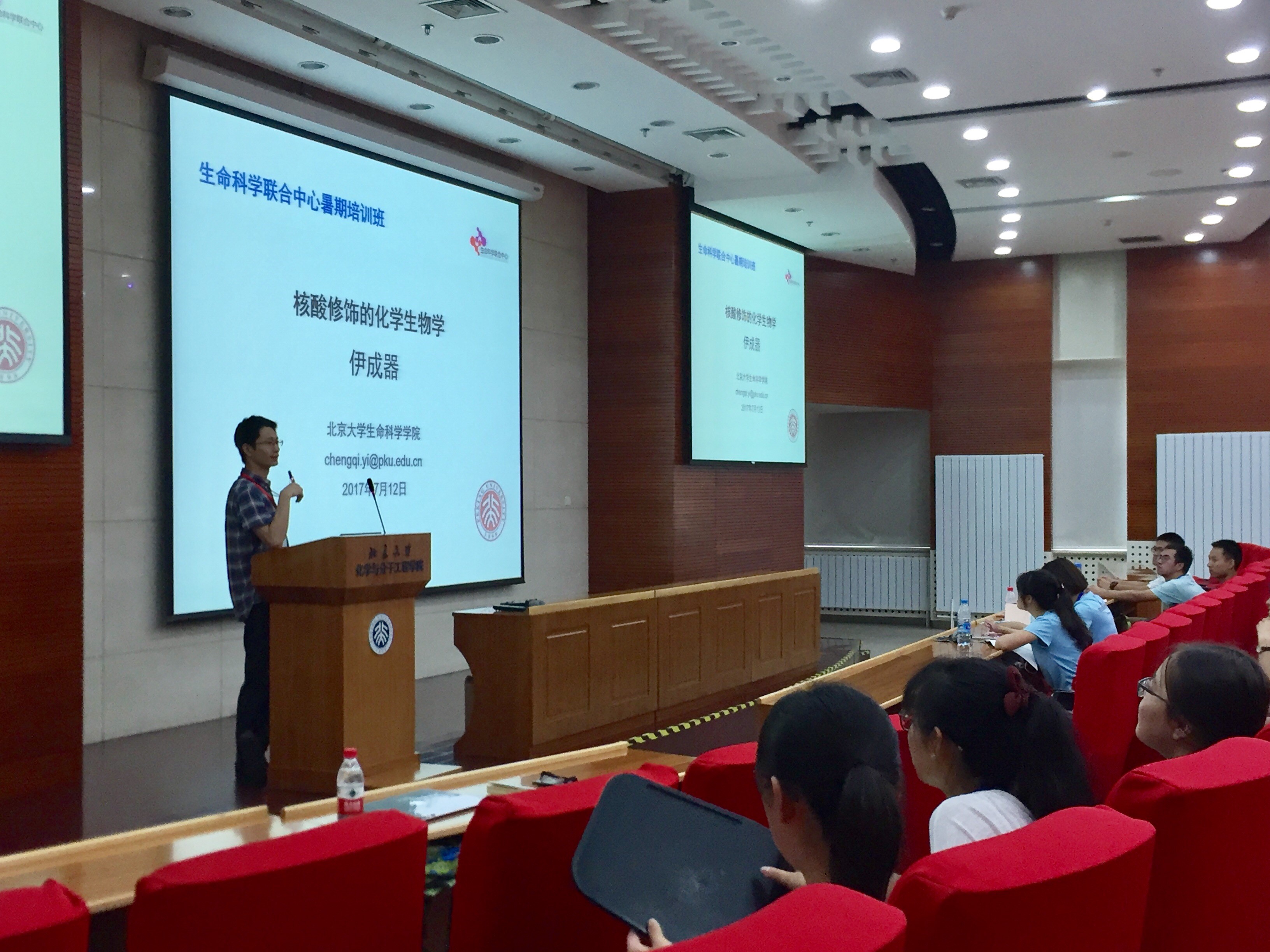7月11日晚,来自全国高校64名大学本科生相聚于北京大学化学与分子工程学院,参加由生命科学联合中心举办的“化学生物学”暑期培训班开班仪式。伊成器向学员们简要介绍了暑期班以及参加授课的老师们的研究方向和背景。陈鹏、饶燏和邹鹏,分别代表北大和清华两校对同学们表达了最热烈的欢迎。为了让长途跋涉的学员们能早点吃到晚饭,老师们用言简意赅的致辞表达着北京夏天般浓缩与纯粹的炽热。带着初识的羞涩与隐藏不住的兴奋,同学们和参加开幕式的老师与学长们一起交流着。生命中心“化学生物学”暑期班就此拉开帷幕。