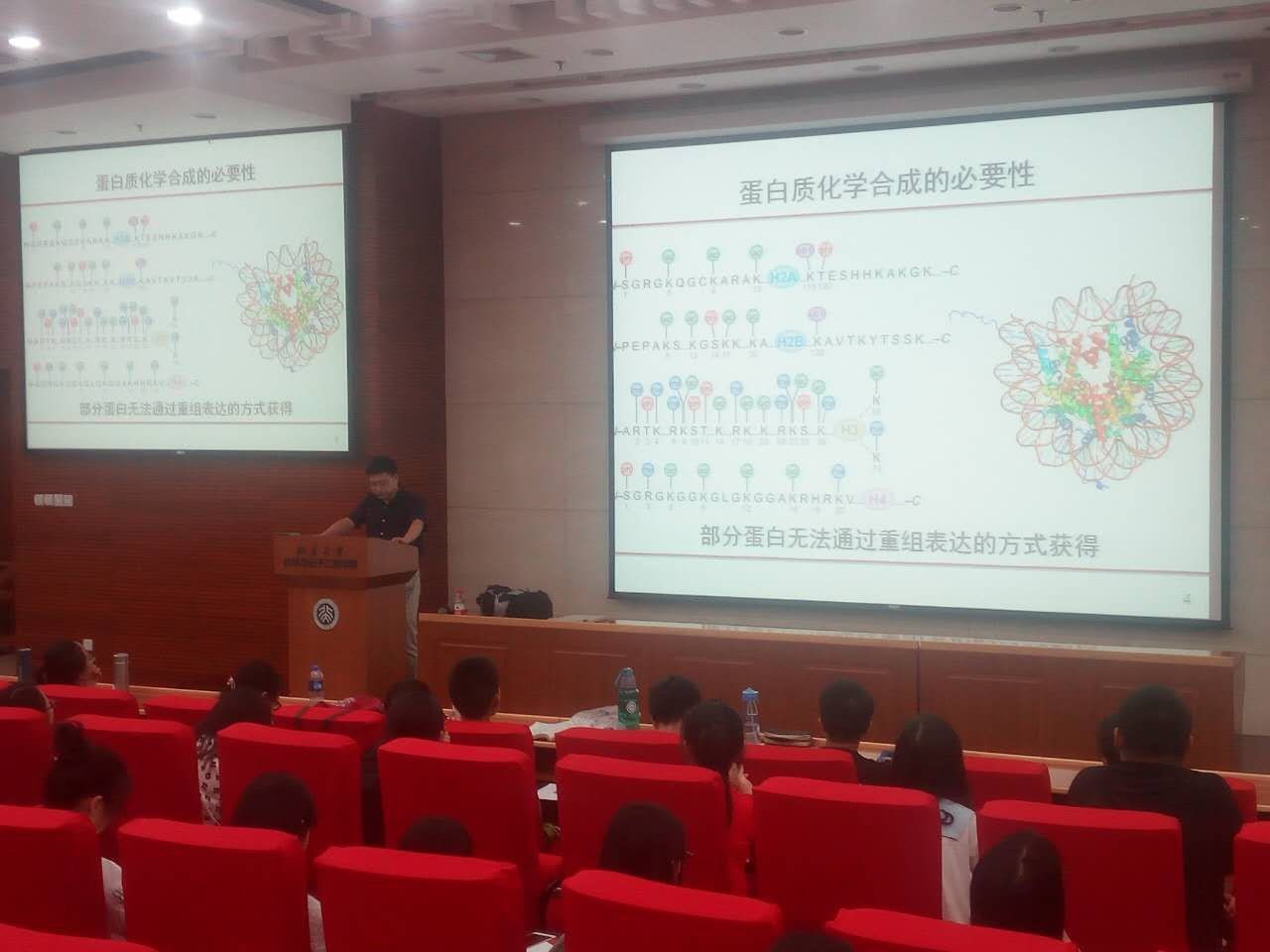 在接下来极为紧凑和繁忙的三天里,学员们听取了来自北大、清华两校,包括伊成器、陈兴、尹航、刘志博、陈鹏、邹鹏、张永辉、贾桂芳、刘小云、王初、饶燏、罗佗平和刘磊共13位老师的讲座。主题涵概了从“核酸化学生物学”、“化学糖生物学”、“计算机模拟在化学生物学研究中的应用”、“分子影像与放射化学生物学”、“生物正交化学反应”、“定向分子进化”、“靶向胆固醇生物合成的新药研发:机遇与挑战”、“植物中的化学生物学”、“生物质谱与蛋白质组学”、“化学蛋白质组学”、“抗肿瘤小分子靶向抑制剂的开发”、“天然产物小分子—有机合成、化学遗传学和药物研发”、“蛋白质人工合成与应用”等各研究领域。除此之外,培训还安排了老师引导的小组讨论及实验室参观等活动,仿佛为参加的同学们打开了全新的通往交叉科学研究世界的大门。