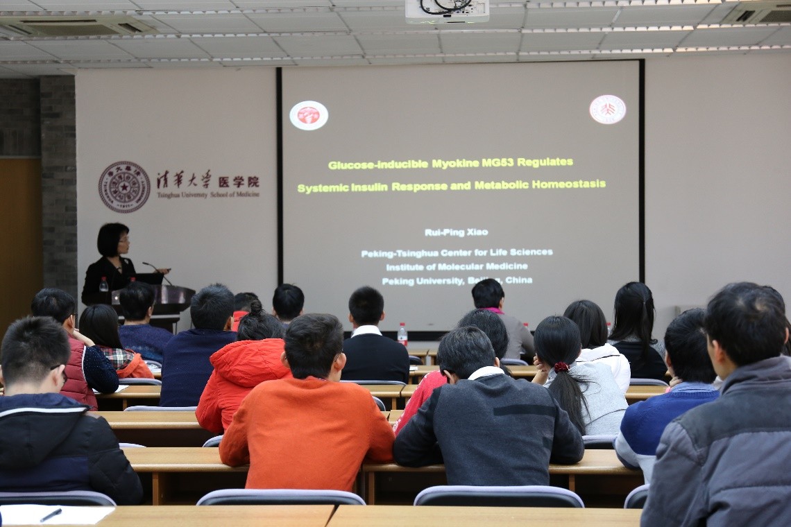 11月23日下午,生命科学联合中心承办的第60期“水木清华生命科学讲座系列”在清华大学医学科学楼B323举行。北京大学终身讲席教授、北京大学分子医学研究所所长肖瑞平老师为师生们做了题为“Glucose-sensitive Myokine/Cardiokine MG53 Regulates Systemic Insulin Response and Metabolic Homeostasis”的学术报告。报告由生命中心PI王一国老师主持。