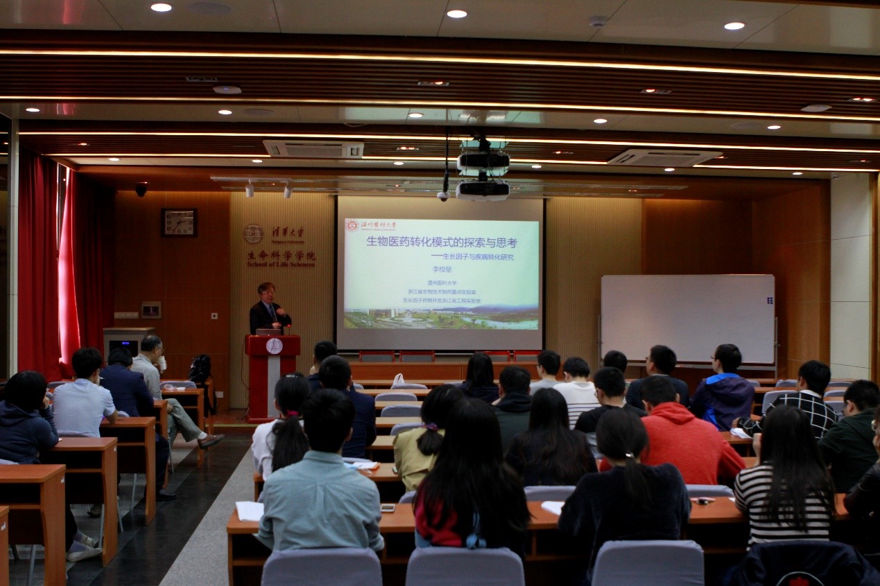 4月12日下午,生命科学联合中心承办的第63期“水木清华生命科学讲座系列”在清华大学生物新馆143举行。现任温州医科大学校长的李校堃教授,做了题为“生物医药转化模式的探索与思考”的讲座。报告由药学院刘刚教授主持。