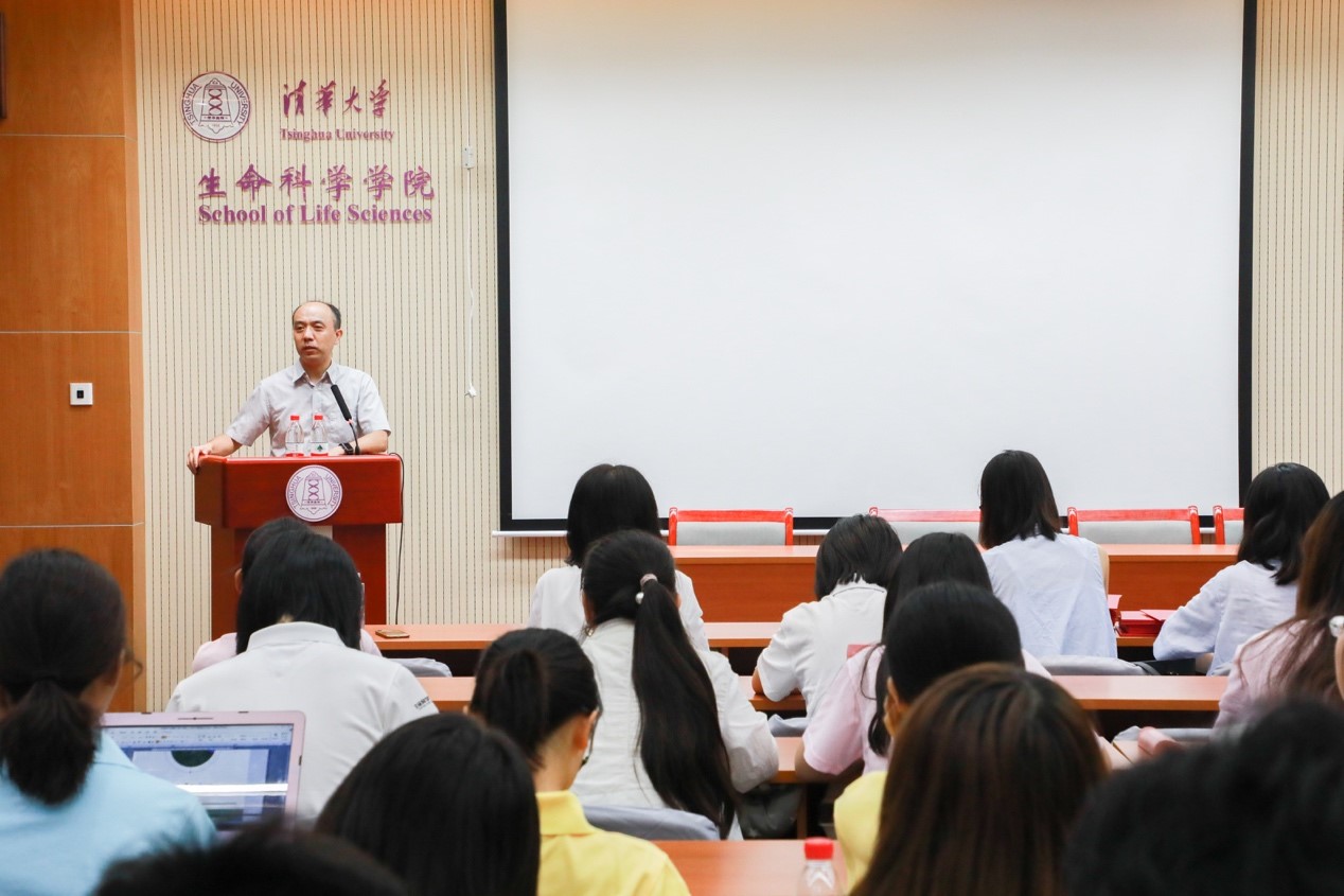 接着,生命中心主任施一公教授发表讲话。施一公教授先介绍了生命中心和暑期班的创办历史,并向同学们简单讲解了结构生物学、化学生物学、药物化学三个方向的研究内容,再结合自己的研究领域,向大家详细讲解我国结构生物学的发展历程。上世纪60年代,我国最早的结构生物学应用——牛胰岛素晶体成功全合成,然而到了上世纪80年代,我国结构生物学已经远落后于其他国家,90年代再重新开始发展。经过多年的发展,2011年以来清华结构生物学在全国乃至世界上取得了突出成绩。最后,施教授希望大家好好感受生命中心的宗旨,也希望大家好好感受结构生物学、化学生物学、药物化学前沿带给大家的惊喜。