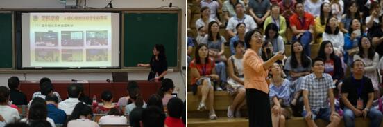李海涛教授讲授了表观遗传调控的分子结构机理研究,并阐释了他的团队在与癌症、白血病等人类疾病密切相关的“组蛋白密码”分子识别与破译方面取得的一系列原创性成果;王一国教授讲授了肝脏中糖脂代谢信号调控的分子机制与肥胖、糖尿病等代谢性疾病的科研进展;彭敏教授讲授了免疫调控与衰老、健康的关系;王建斌教授详细介绍了系统生物学及相关的网络交叉学科的历史、发展和未来的研究方向;张强峰研究员讲授了计算生物学的历史、前沿和利用大数据分析方法研究转录组;张伟教授讲解了人类神经系统和感觉的神经机制;陈国强教授通过聚羟基脂肪酸酯(PHA)详细介绍了迈向新时代的工业生物技术;贾怡昌教授讲授了神经疾病相关的分子机制和新一代基因治疗手段;戚益军教授重点阐述了作物驯化、转基因与人类等热点问题。这些课程都让中学教师们大开眼界,在认真聆听的同时也惊叹于生命学科的迅速发展和应用,并就自己感兴趣的问题与教授们展开热烈问答和讨论。