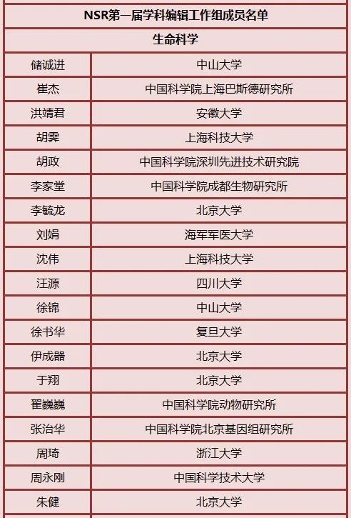 生命中心4位研究员入选NSR第一届学科编辑工作组(生命科学)