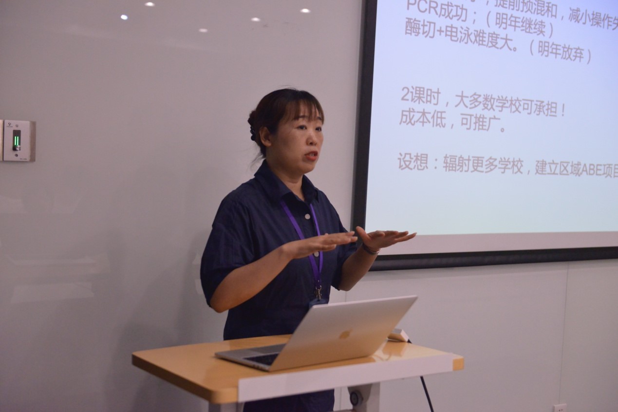 随后,来自清华附中的学员代表邵嘉乐和傅弈涵分享了在校本课《ABE项目-基因工程实验》(以下简称“校本课”)参与实验和阅读讨论我国科学家科研成果的体会;学员代表韩嘉颖分享了融合到常规体系课程的《ABE项目-PCR、酶切与电泳》(以下简称“500人实验课”)的体会和收获。