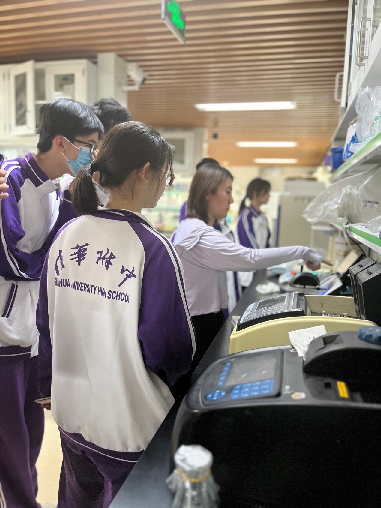 课程结业式结束后,同学们在徐敏老师的带领下,参观了清华大学王新泉教授实验室,了解新冠病毒蛋白结构解析过程。