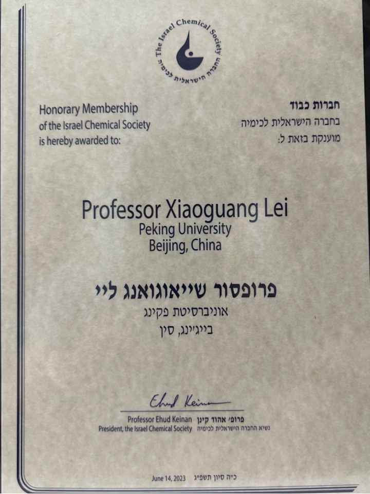 祝贺雷晓光教授荣获2023年以色列Sackler Chair Award和以色列化学会荣誉会士称号