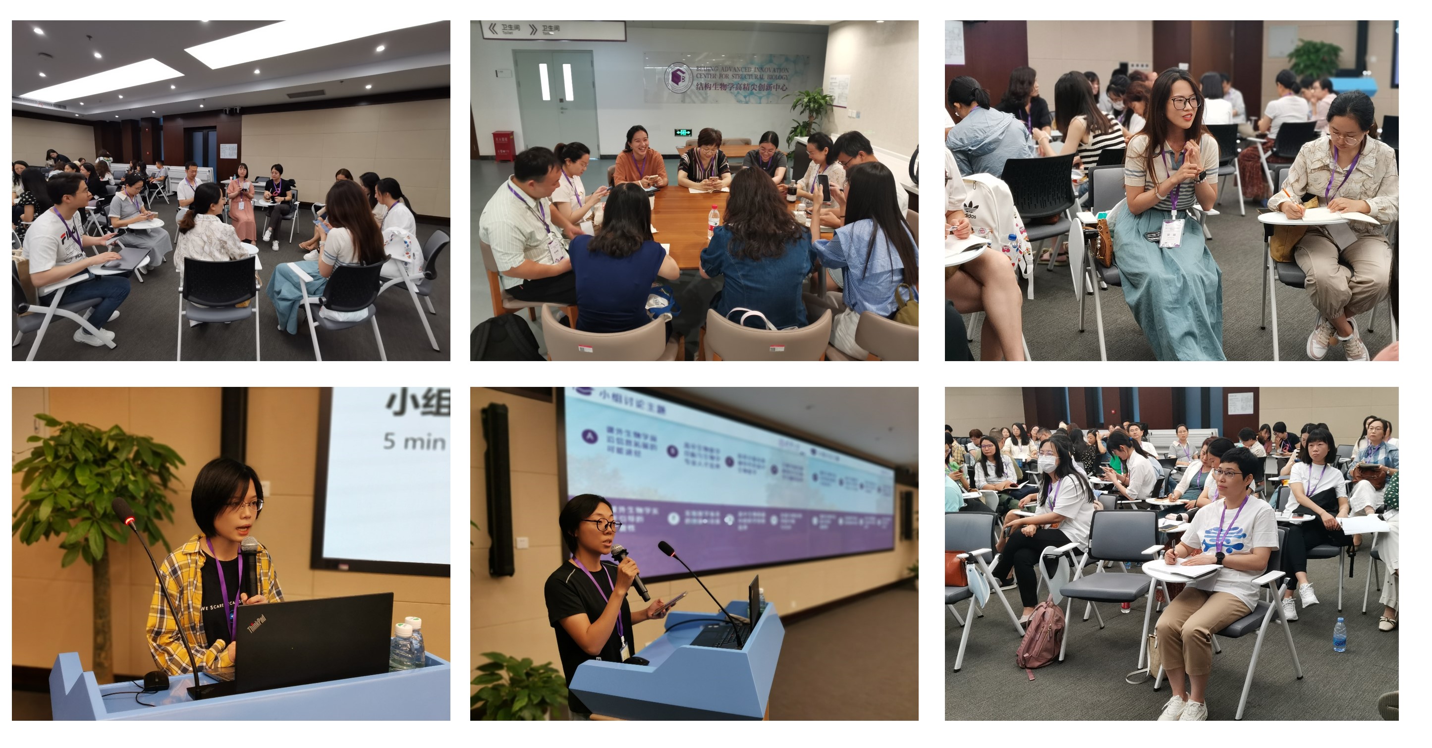 为增进学员们之间的交流与学习,课程还设置了“破冰”环节,围绕“课外生物学前沿信息拓展的可能途径”、“高中生物教学目标与生物学专业人才培养”、“如何开展有地域特色的高中生物教学”、“课外生物学实践引导的重要性”和“实验教学体系的创新和发展”等主题,分小组后组内成员从工作中遇到的实际问题和探索出发,根据课题分别发言,开展广泛交流,学员们加深了彼此的认识,也了解了不同地域生物学教学的共性与差异。小组交流后,各小组还将自己的讨论成果进行了汇总,并向大家进行了展示分享。