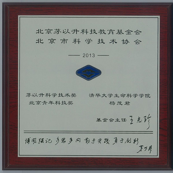 2014-06-12生命中心杨茂君荣获2013年度茅以升北京青年科技奖 -