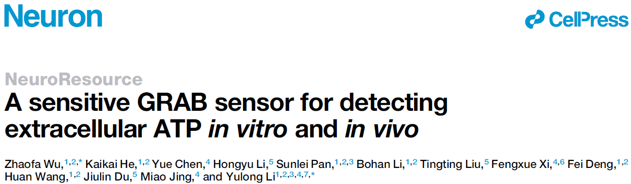 Neuron|李毓龙实验室开发新型GRAB荧光探针用于检测胞外ATP的时空动态变化