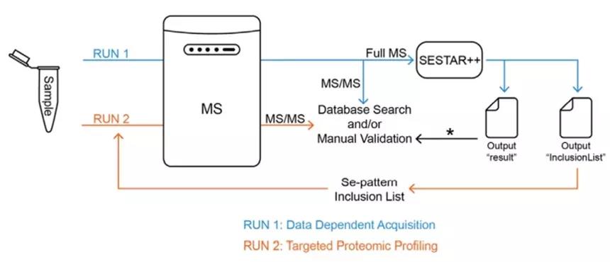 近日,北京大学化学与分子工程学院、生命科学联合中心王初课题组在Methods in Enzymology杂志上发表了题为“An accelerated and optimized algorithm of selenium-encoded isotopicsignature targeted profiling for global selenoproteome analysis”的论文。在这项工作中,作者在本课题组此前开发的特异性识别质谱数据中含硒肽段印记的算法SESTAR基础上,发展了具有极高计算速度、更低假阳性率的新一代算法SESTAR++,并提供了在windows操作系统上易于使用的图形用户界面。SESTAR++可在https://github.com/wangchulab/SESTARpp免费下载。 硒在生物体中发挥着重要的作用,硒缺乏可能会导致克山病、大骨节病等症状。硒在生物体中的主要存在形式为硒代半胱氨酸,硒代半胱氨酸也被称为“第21种氨基酸”,其活泼的化学性质赋予了硒蛋白在氧化还原方面更高的活性,在清除氧化压力、维持氧化还原稳态发挥了重要的作用。但因硒蛋白的丰度极低,在蛋白质组中对其直接的检测较为困难。硒具有与构成蛋白质的C、H、O、N、S元素明显不同的天然同位素组成,因此当硒进入肽段后,会明显改变肽段的同位素分布。此前王初课题组发展了名为SESTAR的算法,利用含硒肽段特异的同位素分布,可特异性地识别蛋白质组数据中的含硒肽段,提升对含硒肽段的检测效果。SESTAR不仅可提高内源硒肽段的检测效果,也可提高外源含硒标签标记肽段的检测效果。 利用SESTAR++进行含硒肽段靶向鉴定需要两轮质谱检测。首先需要进行常规DDA鉴定,主要得到一级谱信息供SESTAR++识别潜在含硒肽段。在使用SESTAR++时仅需简单设置的参数,对于单次DDA数据的计算仅需约5 min。在第二轮鉴定中则使用inclusion list、PRM等靶向采集模式对SESTAR++识别到的可能含硒肽段进行靶向鉴定。在开启inclusion list生成功能后,SESTAR++计算得到的结果经过极简单的excel处理即可在此步中导入质谱进行含硒肽段特异的靶向鉴定。 总之,本文首次报道了更快速、假阳性率更低的含硒肽段识别算法SESTAR++,提高了硒蛋白的检测效果。并且在文章中对SESTAR++软件的使用,以及SESTAR++辅助靶向鉴定的整体流程进行了详细的介绍,可便于研究者利用SESTAR++提升内源硒肽段或外源硒化学标签标记肽段的检测效果。本文的通讯作者为北京大学化学与分子工程学院、生命科学联合中心的王初教授,其指导的化学与分子工程学院2019级研究生贾国赓为本文的第一作者。王初课题组博士毕业生高晋君、杨帆与研究生冯天宇等合作者为本课题做出了贡献。 文章链接: