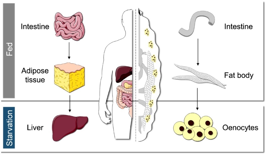 6. Gutierrez, E., Wiggins, D., Fielding, B., and Gould, A.P. (2007). Specialized hepatocyte-like cells regulate Drosophila lipid metabolism. Nature 445, 275-280.