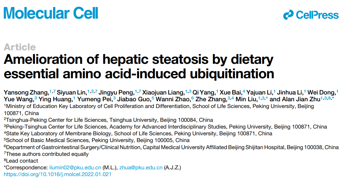 Molecular Cell | 生命中心朱健课题组揭示必需氨基酸抵御脂肪肝病的作用机制