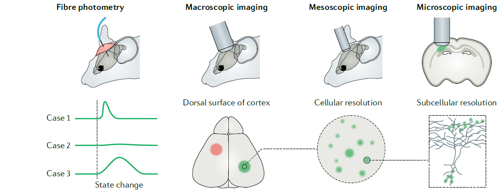 图2. 基因编码神经递质荧光探针与多种成像方法的结合及应用