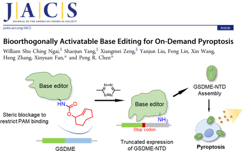 图1. 基于生物正交脱笼反应的BaseBAC技术,可原位、实时触发细胞焦亡 (J. Am. Chem. Soc. 2022, DOI: 10.1021/jacs.1c12924)