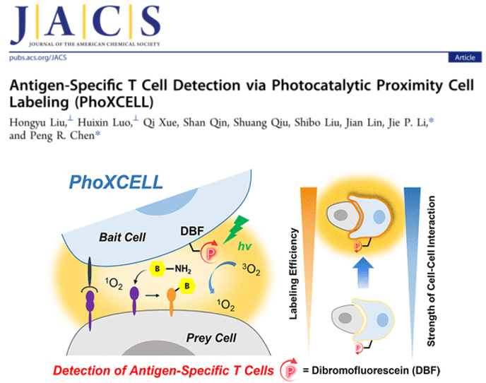 图2. 基于生物正交光催化反应的PhoXCELL技术,可实现细胞-细胞相互作用的原位捕获和定量鉴定(J. Am. Chem. Soc. 2022, DOI:10.1021/jacs.2c00159)。