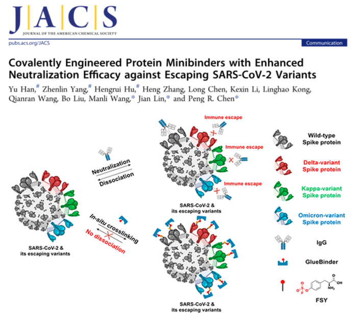 图3. 基于邻近化学交联反应的GlueBinder技术,可用于防止新冠病毒突变产生的抗体逃逸(J. Am. Chem.Soc. 2022, DOI: 10.1021/jacs.1c11554)。