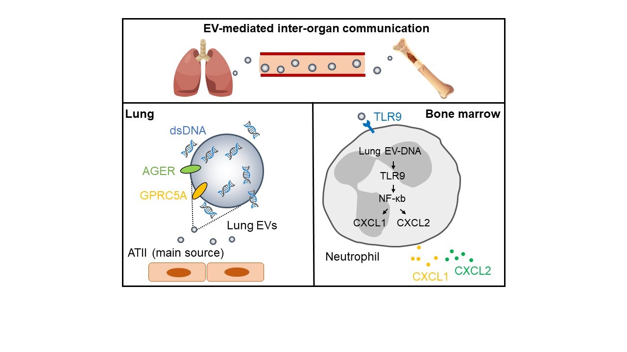 尹玉新团队发现新型器官间远程通信机制:肺组织细胞外囊泡调控骨髓中性粒细胞的趋化募集以应对病原微生物的侵袭