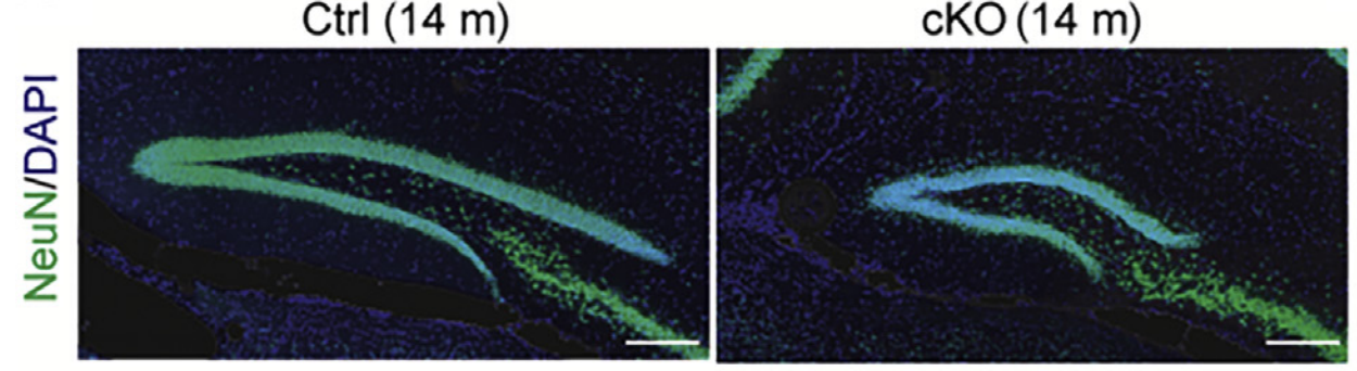 为了进一步揭示星形胶质细胞Piezo在组织细胞水平中的作用,研究者以成体神经发生微环境为切入点,探究了星形胶质细胞Piezo敲除对海马成体神经发生可塑性的影响。研究人员发现,在星形胶质细胞中特异性敲除Piezo1通道的小鼠表现出现严重的海马体积缺陷(图1)。进一步的分析发现,星形胶质细胞Piezo敲除显著抑制了海马神经干细胞的增殖,导致包括神经前体细胞、非成熟神经元、成熟神经元以及星形胶质细胞数量的明显减少。值得注意的是,星形胶质细胞Piezo敲除导致的海马成体神经发生的缺陷可以通过外源添加ATP进行挽救,从而进一步证实星形胶质细胞Piezo通过影响ATP释放的分子机制。