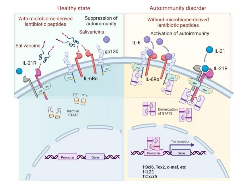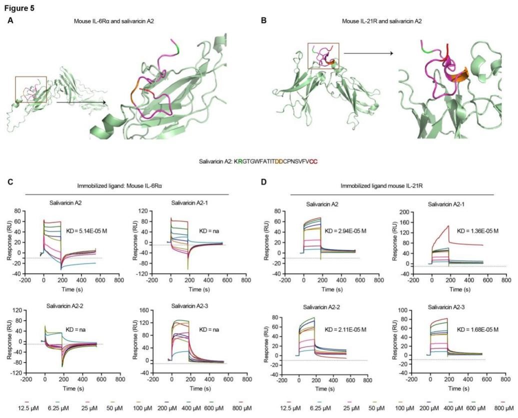 图2. 抗菌肽salivaricin结合IL-6和IL-21受体(引自Advanced Science, advs. advs.202202706)