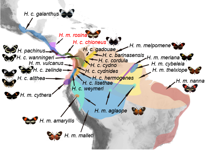 图1. 袖蝶属Heliconius melpomene和Heliconius cydno地理分布