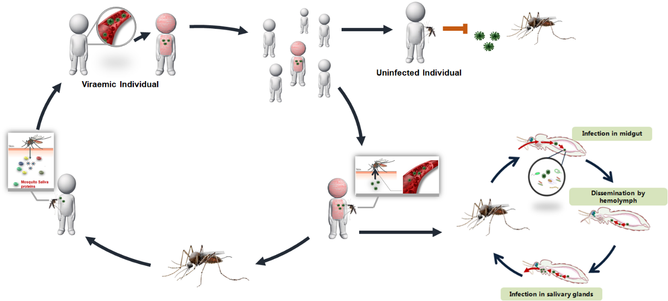 图1. 蚊媒病毒“宿主-蚊”传播循环