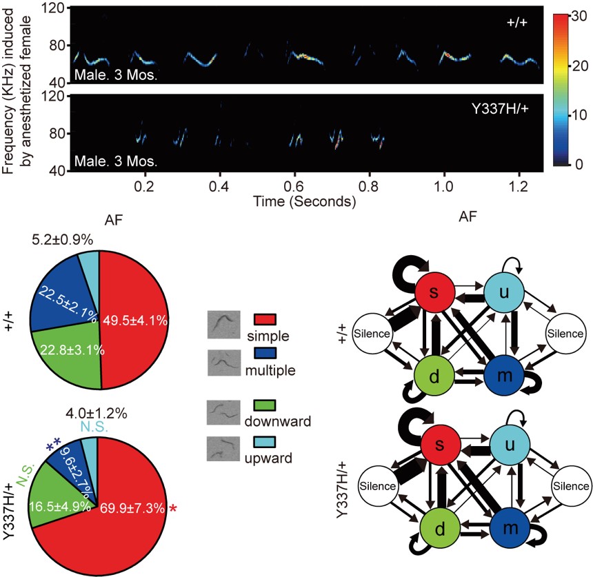 图1. TCF7L2 Y337H点突变损害小鼠发声