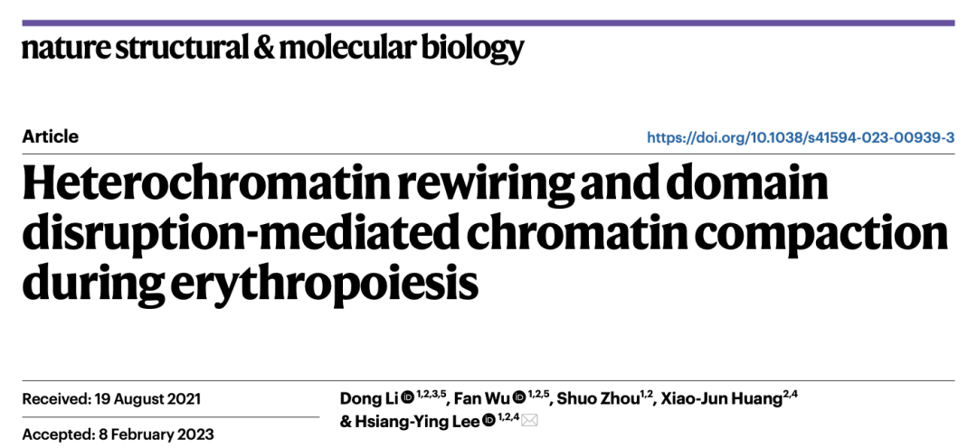 Nat. Struct. Mol. Biol|李湘盈课题组解析人类红细胞发育中核压缩过程的染色质结构动态与机制