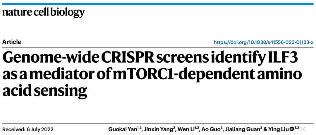 Nat Cell Biol | 刘颖团队利用全基因组CRISPR筛选mTORC1感应氨基酸的调控蛋白