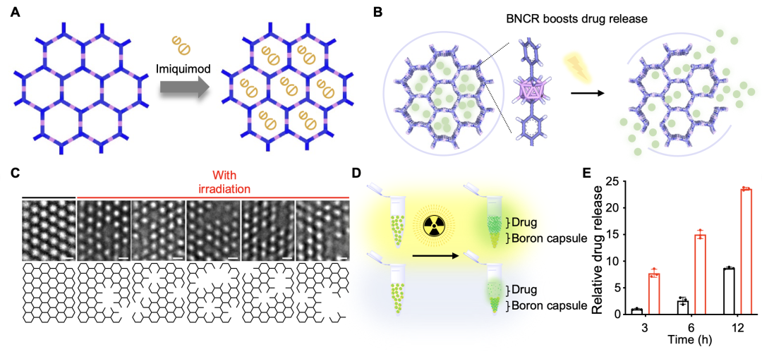 近日,生命科学联合中心、北京大学化学与分子工程学院应用化学系刘志博课题组刘志博教授与浙江大学药学院顾臻教授在《自然·通讯》(Nature Communicaitons)上发表题为“Localized Nuclear Reaction Breaks Boron Drug Capsules Loaded with Immune Adjuvants for Cancer Immunotherapy”的研究论文。报道了一种可以响应中子照射实现药物缓释的碳硼烷骨架的共价有机材料,并将免疫激动疗法与硼中子俘获疗法相结合,探究了该策略的肿瘤治疗效果。