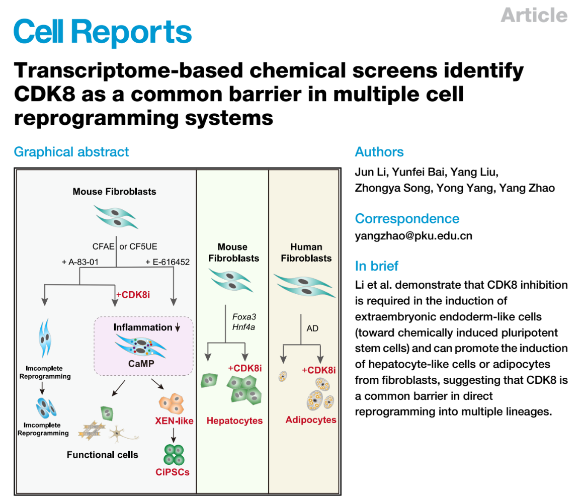 赵扬团队揭示CDK8是多个细胞重编程过程共同的分子障碍