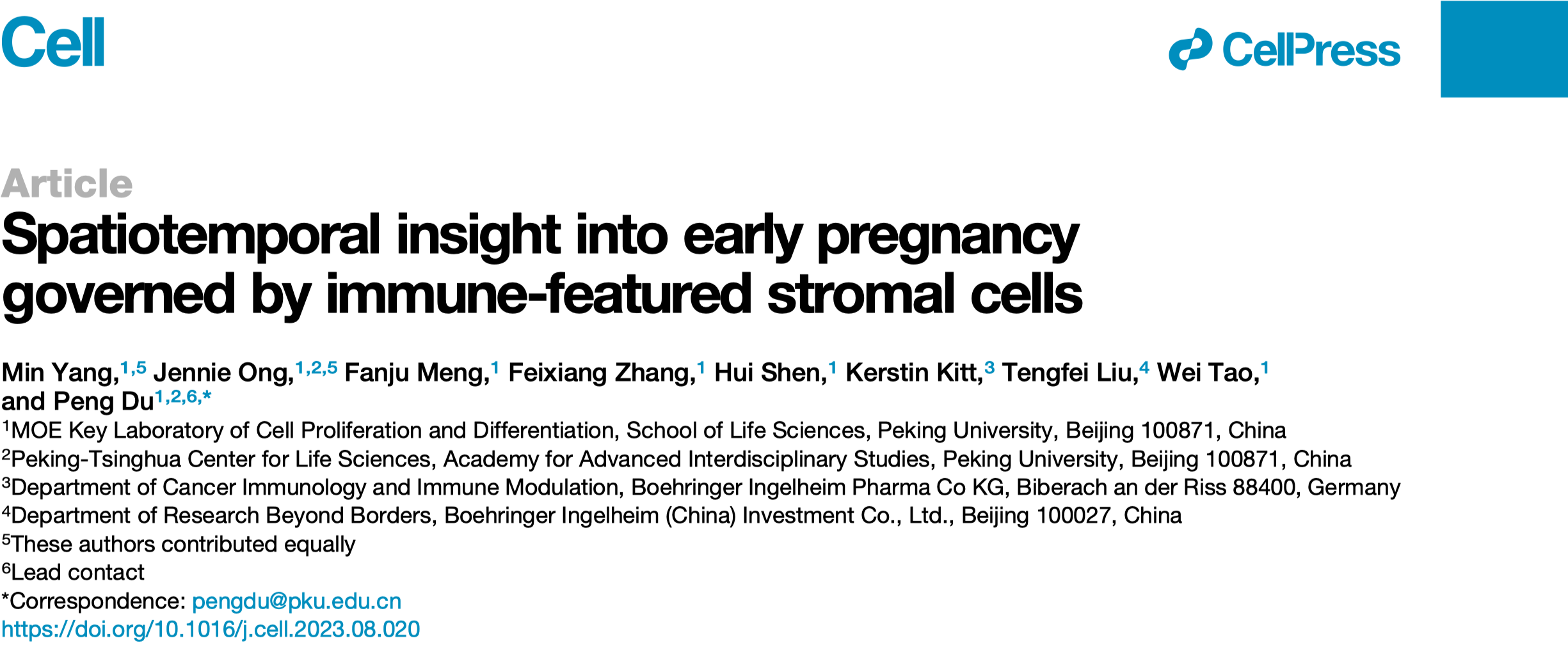北京大学生命科学学院/北大-清华生命科学联合中心的杜鹏研究员为该论文的通讯作者。北京大学生命科学学院毕业博士生杨敏和生命科学学院博士后翁建莉为本文的并列第一作者。北京大学生命科学学院陶伟教授,博士研究生孟繁举、张飞翔,博士后申辉,勃林格殷格翰Kerstin Kitt和刘腾飞博士对本文有重要贡献。
