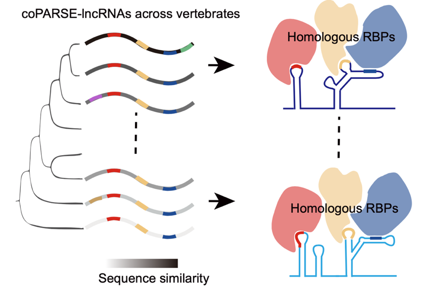 总而言之,该团队的研究提供了一个基于机器学习的计算分析方法,鉴定得到了一系列在脊椎动物中潜在同源的lncRNA,并通过实验验证了同源lncRNA的功能保守性。这些lncRNA在进化过程中序列保守性逐渐消失,但是却保留着保守的RBP结合模式(图2)。该工作极大地扩展了当前脊椎动物中保守的lncRNA库,为研究lncRNA的进化、功能及作用机制提供了新视角和新资源。