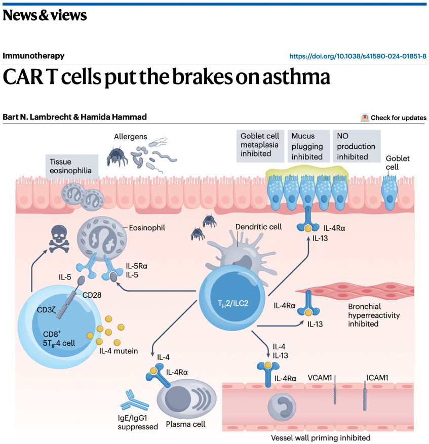 6. Bart N. Lambrecht & Hamida Hammad. CAR T cells put the brakes on asthma. Nature Immunology, 2024.