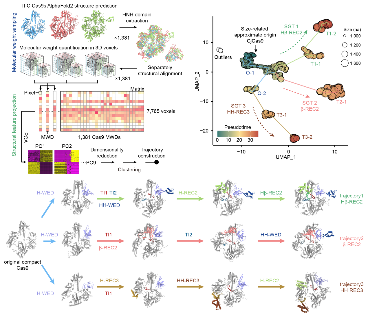 图2. 结构生长轨迹分析方法(左)和II-C型Cas9的生长轨迹图(右)