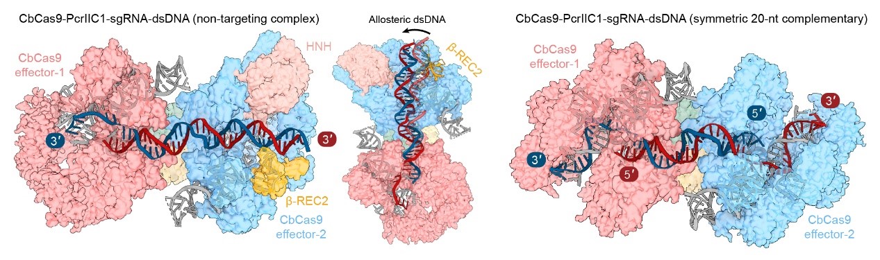 图5. CbCas9-PcrIIC1复合物结合长链DNA的结构